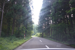 電気自動車に乗って早朝に出発。