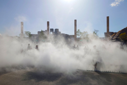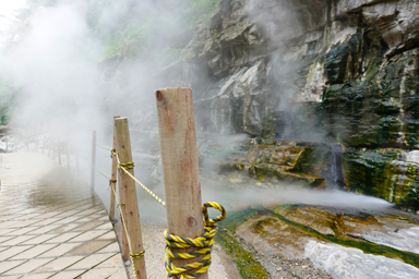 岩の割れ目からシューと噴き出す蒸気。