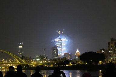 台北101の周辺は例年大混雑で、数時間前から場所取りが必要だそうです。待つのが好きではないので、少し離れた彩虹河浜公園という河原から見ることにしました。