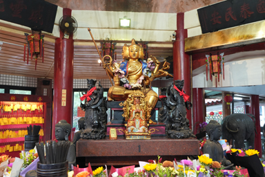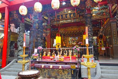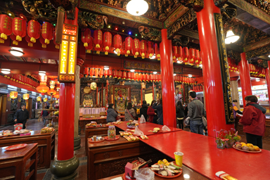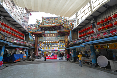夜市の中心でたたずむ廟。