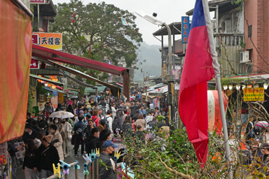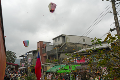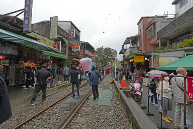 滝を見た後は20分ほど歩いて十分の駅へ。ここはランタンで有名な場所。そして大混雑。日本人団体ツアーも各社たくさんいます。