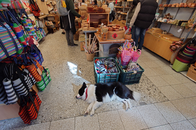 お土産屋さんの店頭で、犬が熟睡中。