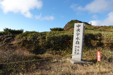 道沿いには中央分水嶺の碑。