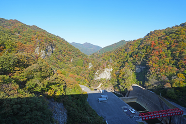 紅葉が始まる吾妻峡。